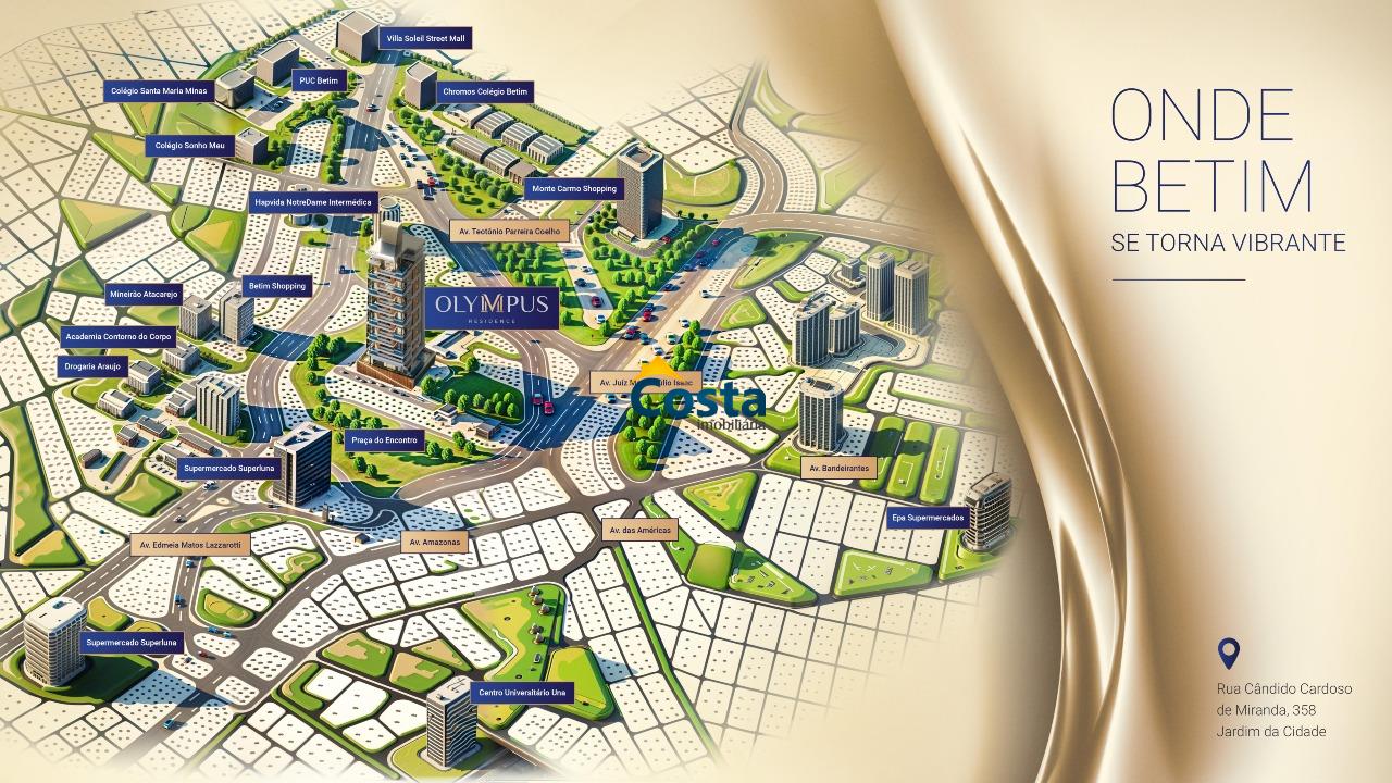 Localização privilegiada: bairro Jardim da Cidade, um dos mais valorizados, tendo acesso fácil e rápido a todo tipo de comércio e serviços na região central de Betim, incluindo shoppings, supermercados, universidades e hospitais.