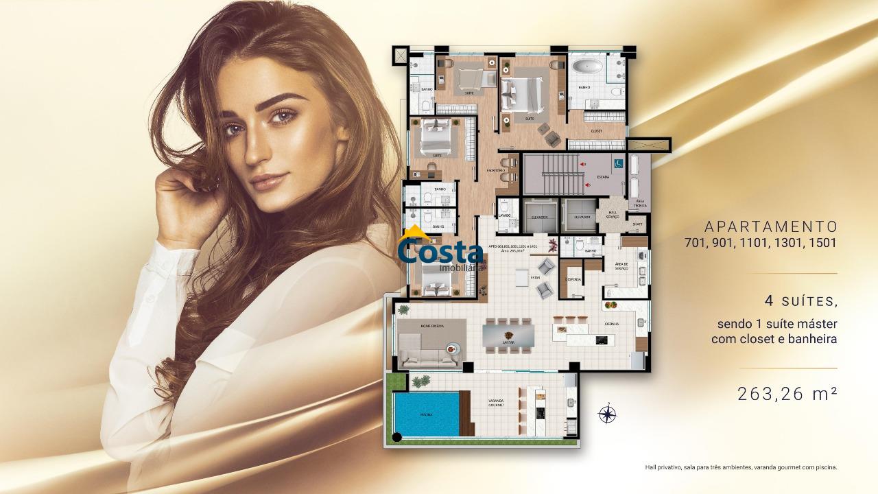Esta unidade do Olympus Residence possui 263,26m² e foi projetada para oferecer exclusividade, conforto e elegância em cada detalhe!